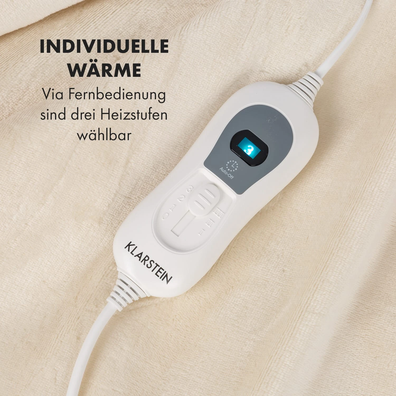 Die Klarstein Slanket Heizdecke mit praktischen Ärmeln ist ideal für kalte Wintertage oder die regnerische Herbstzeit. Sie ist das optimale Accessoire für deine Couch oder dein Bett. Das wunderbar weiche Coral Fleece, mit dem sich die Heizdecke an deinen Körper schmiegt, hält dich schön warm. Für die extra Portion Wärme sorgt das 120 Watt starke Heizelement, das du bequem per Fernsteuerung in drei Stufen deinem individuellen Wärmebedürfnis anpassen kannst. Mit der Slanket haben Kälte und Ungemütlichkeit keine Chance.