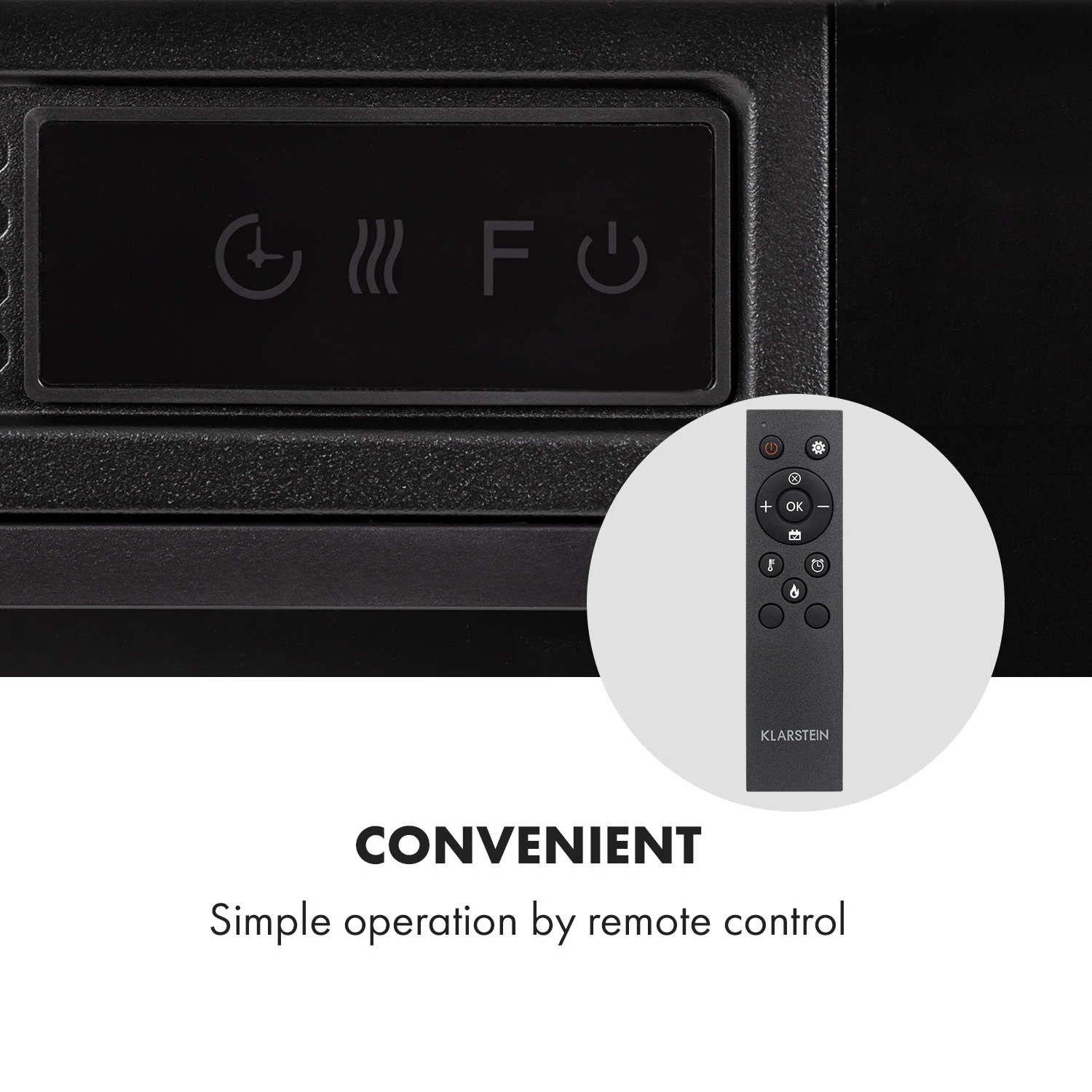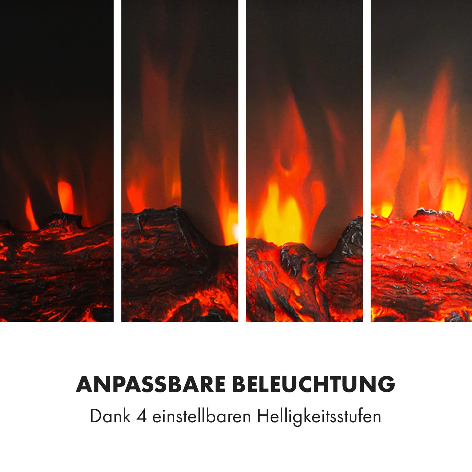 Behagliche Stunden am modernen Kamin verbringen: Der Klarstein Vulsini Elektro-Kamin zaubert realistisch illuminiert ein Flammenspiel ganz ohne Rauch und Ruß. Wundervoll fügt er sich in Nischen ein, du kannst ihn perfekt in Trockenbauwände einbauen oder in einem Kamingehäuse präsentieren. Dort züngeln die LED-Flammen täuschend echt wie am prasselnden Kaminfeuer. Die zuschaltbare Heizfunktion sorgt dabei für kuschelige Wärme zwischen 17 und 27 °C im Raum. Die Helligkeit der Flammenillusion und der animierten glühenden Holzscheite kannst du aus 4 Stufen wählen – alles geht bequem per Fernbedienung und du kannst eine automatische Funktion per Timer vorprogrammieren. Optisch ist der Kamin ein wahrer Hingucker mit modernem Gesicht – unterstreiche diese Erscheinung indem du das untere Fach mit Holzscheiten drapierst.