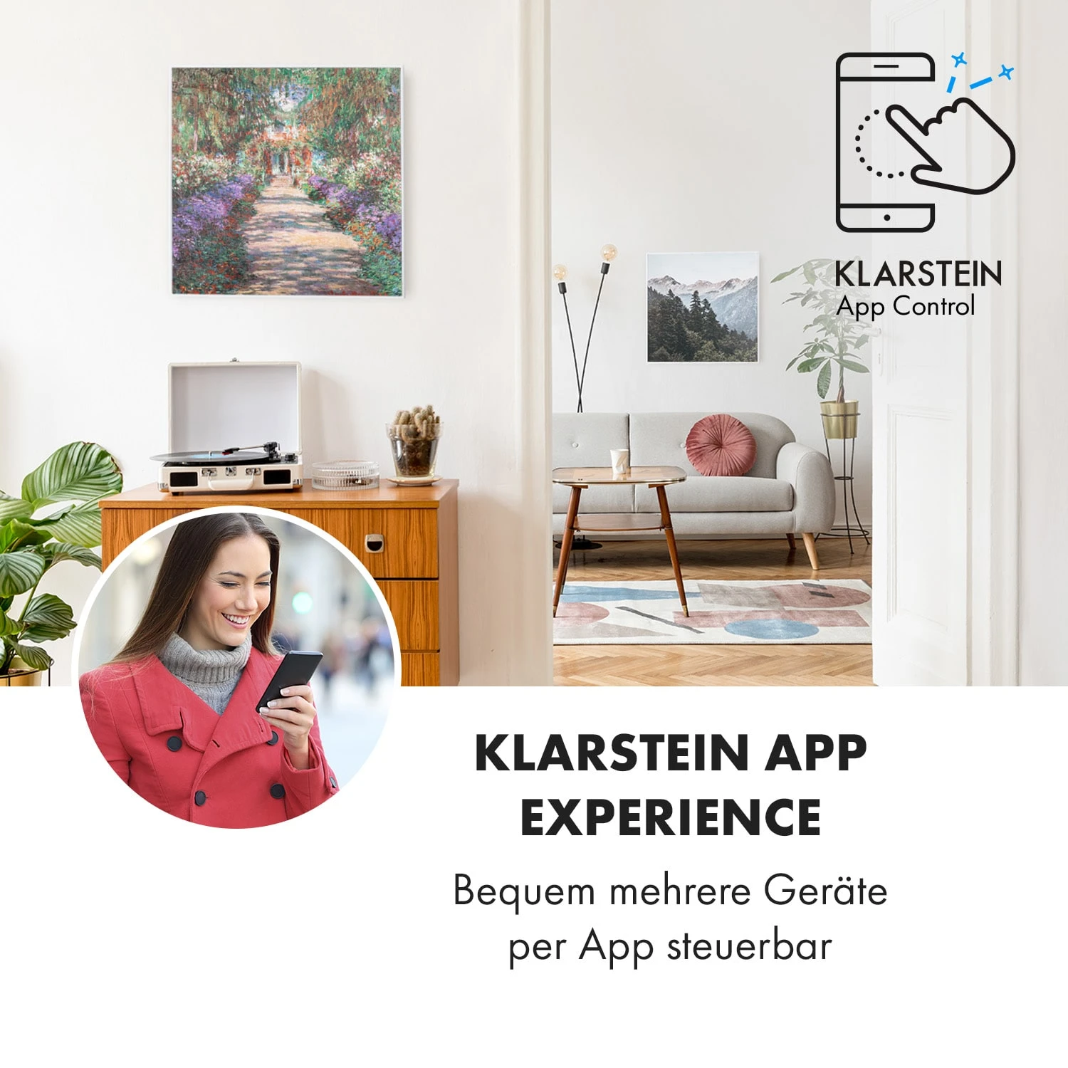 Wonderwall Air Art Smart Infrarotheizung 60x60cm 350W Wandinstallation App-Steuerung Gartenweg