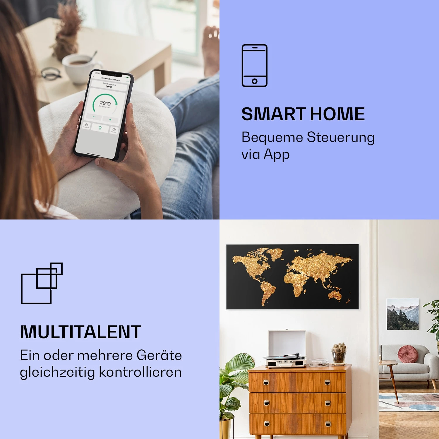 Wonderwall Air Art Smart Infrarotheizung Goldene Karte 120x60cm 700W