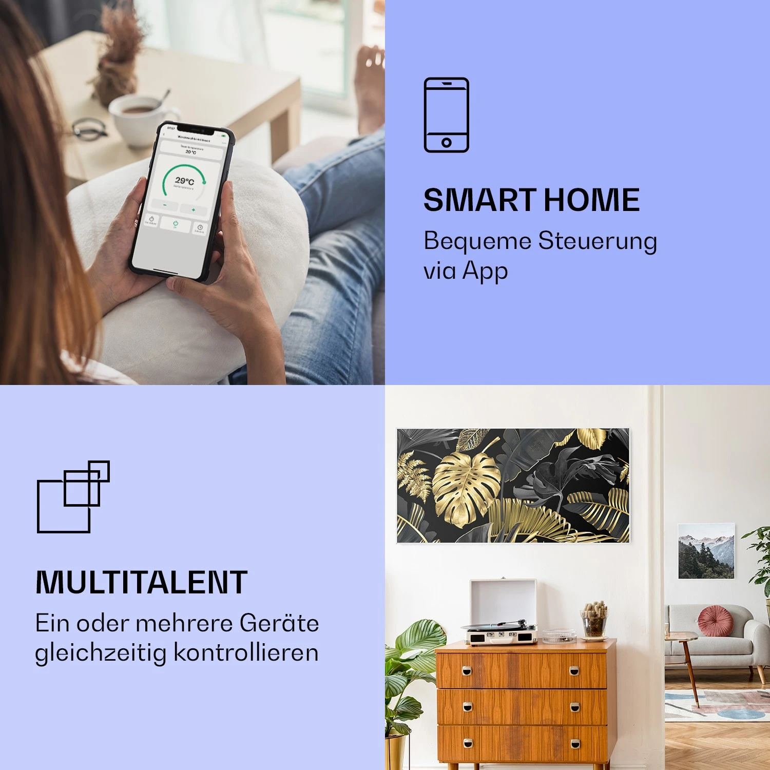 Wonderwall Air Art Smart Infrarotheizung Schwarzes Blatt 120x60cm 700W