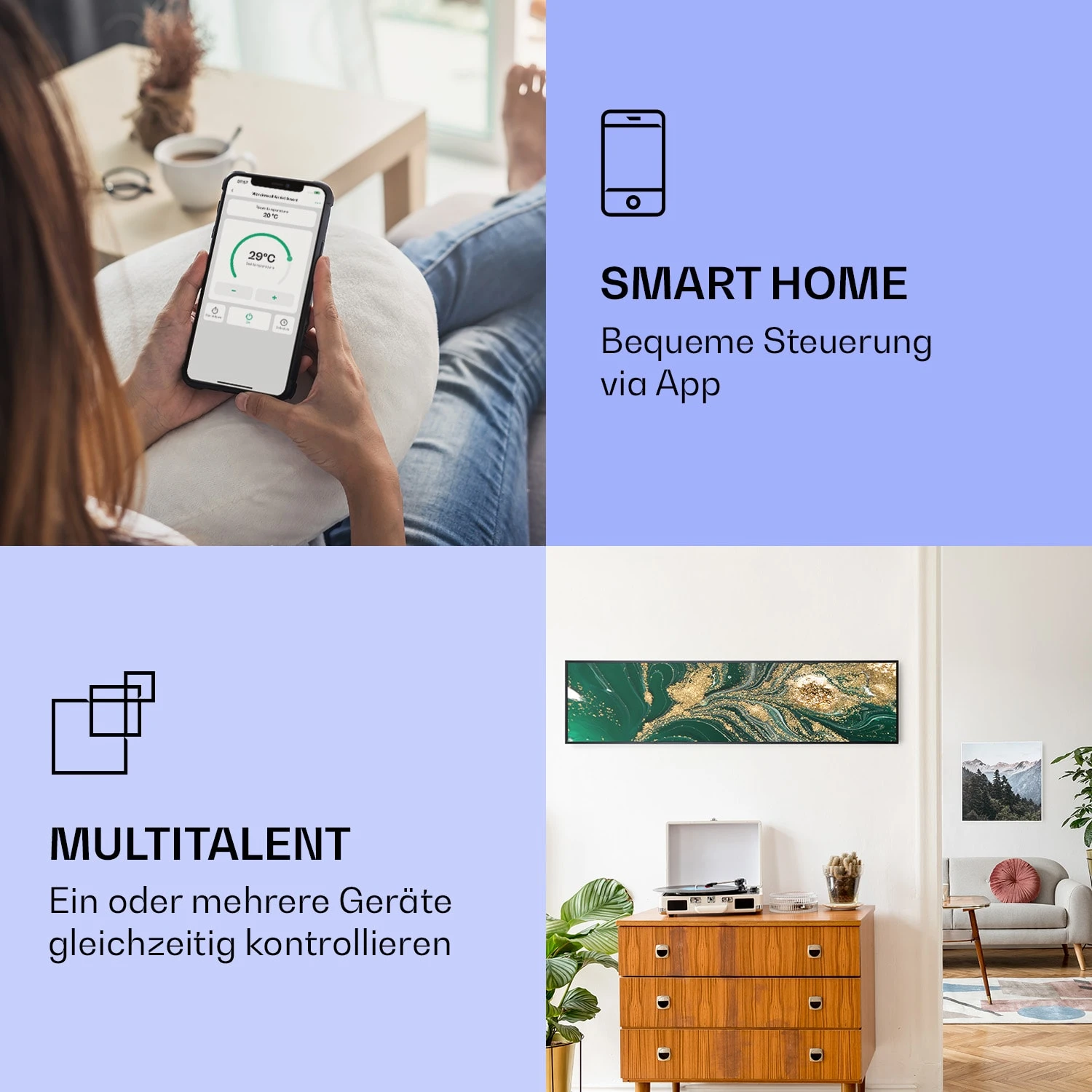 - kombinierbar mit weiteren Panels zur Beheizung größerer Räume